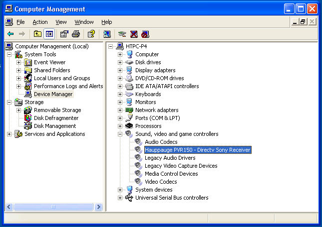 FYI - Since I didn't feel like messing with my server, I just changed the name that windows displays for my xcard. Used to display as "Sigma Designs Xcard MPEG2 Decoder" - I changed it so now if i go into the device mgr it just says "Sigma Designs Xcard" - It still works perfectly fine. I had to change the "devicedesc" key located in HKEY_LOCAL_MACHINE\SYSTEM\CurrentControlSet\Enum\PCI... I would imagine that this would also work for a PVR card, I just don't feel like trying it because I have no need to. Changing it may also require going through the setup wizard again since it'll now see the card by a different name. Ok, I didn't have anything else to do so I started messing with the PVR card. If you look at the attached screenshot you'll see that I named the tuner "Hauppauge PVR150 - Directv Sony Receiver" I had to edit the "friendly name" key in "HKEY_LOCAL_MACHINE\SYSTEM\CurrentControlSet\Control\DeviceClasses\ {65E8773D-8F56-11D0-A3B9-00A0C9223196}\##?#PCI#VEN_4444&DEV_0 016&SUBSYS_88010070&REV_01#4&10416D21&0&00F0#{65e8773d-8f56-1 1d0-a3b9-00a0c9223196}\#{9B365890-165F-11D0-A195-0020AFD156E4}\ Device Parameters" *(your location wont be exactly the same, but they should be in the same general location except for the stuff after DeviceClasses) There should be a friendly name for each tuner you have #2, #3, #4 etc... This is probably not for you if you aren't familiar with registry editing, but I changed it and it's working perfectly fine - also it should be noted that i DID have to run through the setup wizard again. Last edited by dbfresh23; 05-18-2005 at 10:57 PM. |