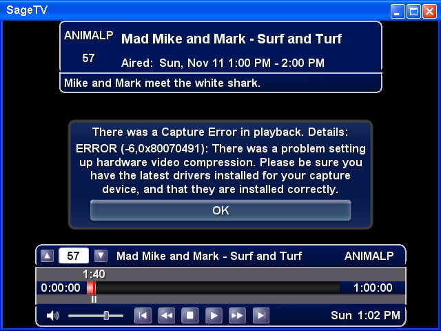 I am trying to install SageTV 6 but I get an error. I have a Plextor TV-402U and have been using BeyondTV but want to try out SageTV.