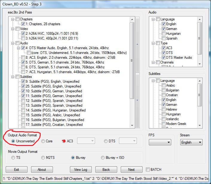 where in clown bd can you tell it to use dts or tru hd and also convert it to ac3. I would love to do this but I only saw the option to convert to ac3 and that's the only audio file it uses when it muxes.