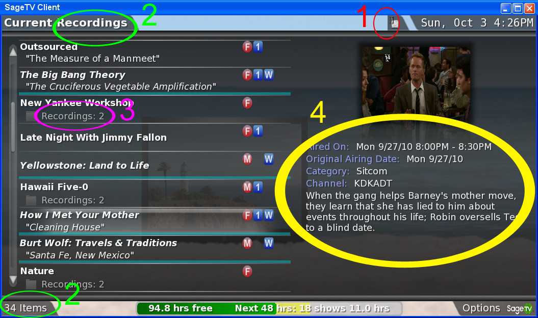 Sage - current recordings screen copy.png 1. Why is this the only "tab" that has a square end? All of the others have an angle, unless they butt up against the edge. 1a. While the "scanning media" icon looks good in a large size, scaled down like this it is practically undecipherable. 2. Are they recordings or items? Also the bottom "tab" is just redundant. It could easily say "Current Recordings (34 Items)" or "102 Current Recordings" (to me the item number is not helpful, the total number of recordings is much more important). 3. Constant labeling is important. If we are going to say "34 Items" then we should say "2 Recordings". 4. While all the info shown is useful, the Plot summary, I have found anyway, is by far the most useful/read. Perhaps that should be above the other items. 4a. This is just a personal prefrence, but I'd like to see a small version of the channel logo here with the channel. It may just be me, but I worked really hard on my channel logos and I never get to see them anywhere anymore (I don't use the guide). There are a few other things. On the main or "home" screen, for instance: The convention is a group of stacking panels, one seemingly behind the next. As you arrow left, the next panel pops out from behind the current one, a nice effect, in my opinion. The problem is that once you get to the third panel and select an option, that effect goes away. They should stack back behind each other, then disappear off to the left and the panel comes in from the right. They do this if you navigate to the third panel and then use the right arrow to navigate back, but not when you actually select an menu item (eg. current recordings). Another little nit I'd like to pick is the grey vertical line that is to the right of the main panel. When you open the second panel, that line moves completely to the end of that panel. When you open the third panel, however, the line is split in weight and half stays with the second panel and half goes with the third (ON the EXTENDER, on the HD100 it just disappears all together). Personally I think that that line should be thought of as an edge or lip for each of the panels. When they are stacked there should be three lines of equal weight against each other, and as they pop open the "edge" of each panel should go with it (ie, When you open the second panel of the TV screen, for instance, there should be one line between the tv panel and the recordings panel and two lines at the end of the second, or recordings, panel. I know this is being highly particular, but the point that I'm trying to make is that whatever behavior is chosen, it should be CONSISTENT throughout. One more example is the "tabs" that appear at the top and bottom. As you scroll through screens, the "sageTV tab" and the "info" tab at the bottom pop down and then back up as the screens change. the same cannot be said for the top "tabs". the secondary tabs, like weather, just disappear and the date tab just stays there. IMO, the behavior should be the same across the board. I'm a huge sage fan, and I think that V7 is a great step forward. I would just like to see all of those little inconsistencies taken care of so the interface could truly shine. Thanks for listening to me ramble. Nick Edit: Sorry, I thought I read the directions on adding an image directly in the post correctly, but apparently not. |