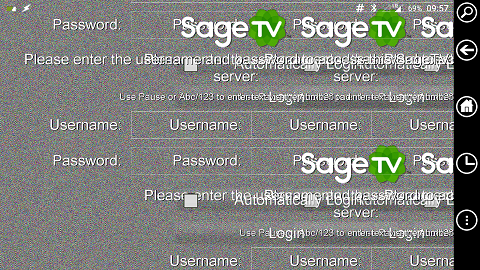 From my android Oneplus 2 phone on my own network, the miniclient connects fine and the image is great on the Linux side. On the Windows side, however, the opening screen image splits into 4 sections - each one a copy - divided vertically. (e.g., the SageTV menu on the left repeats 3 more times). Once within on the menu options, it's ok. A similar mess happens when I try to connect using LocatorID - username/password repeated 4 times and the screen image a jumble of overlays making it impossible to login. I'm attaching 3 images - the good Linux, the bad Windows and the bad placehifter login. Has anyone any idea how I can begin to try to fix this? |