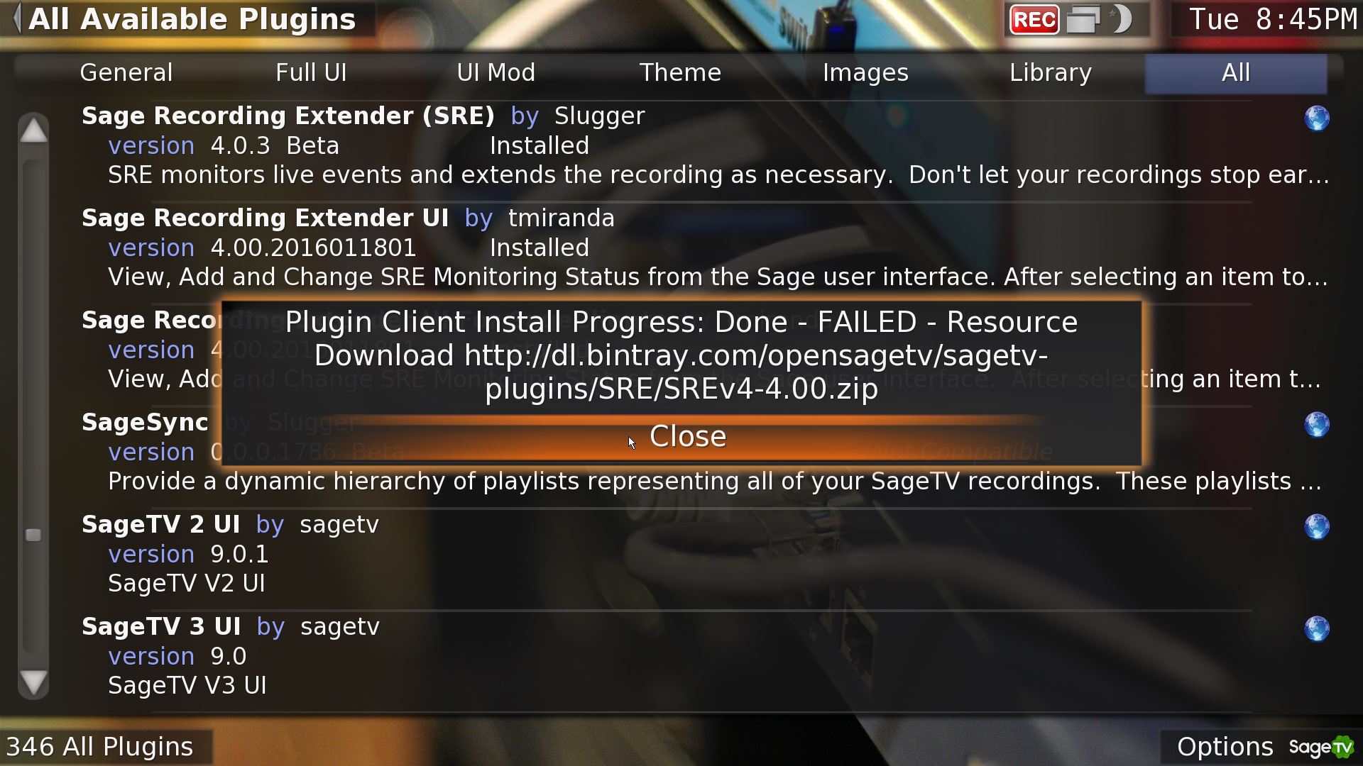 Second, SageTV will only use the v9 repo if the plugin version in it is a higher version number. Thirdly, I have fixed a few of the v9 plugins as it seems some were moved from bintray but the version was not increased. I can look at this one in the morning and see if it is one of those...it looks like it might be. And there were some issues with Java 7 and https links in the v9 repo some Java 8 is likely needed. K
