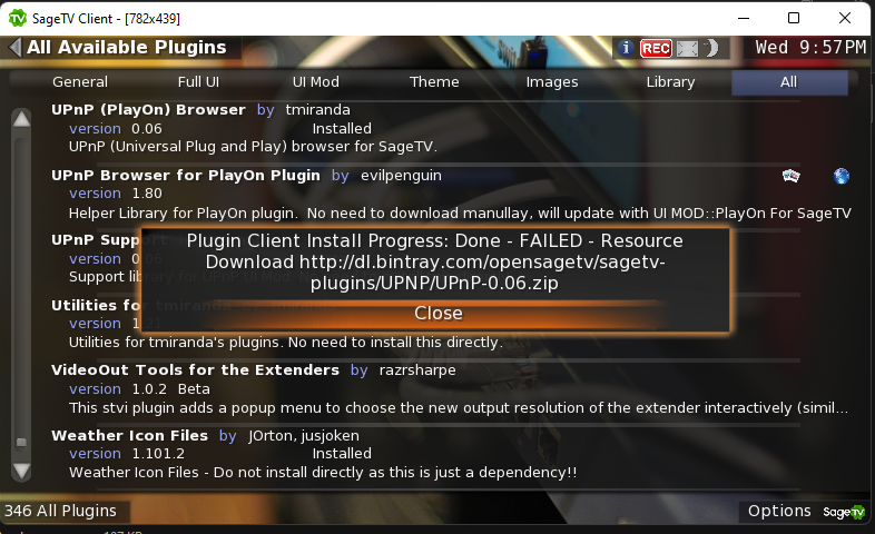 The 'new' SageTV server is a Windows7 machine that had been running Sage9 in 2017, so I removed everything from the Programs file except WIZ.bin and installed the latest V9 over it (9.2.6). How can I install Plugins at this point? Edit: Post #36 on this thread gives a hint.... Now it looks like I need to figure out how to download the XML file. Quote: